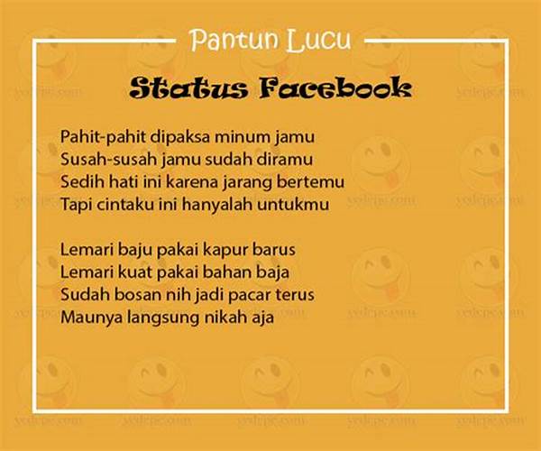 Menghasilkan pantun lucu FB pro yang efektif memang memerlukan sedikit latihan. Penting untuk menggabungkan elemen humor dengan konteks yang relevan bagi audiens.