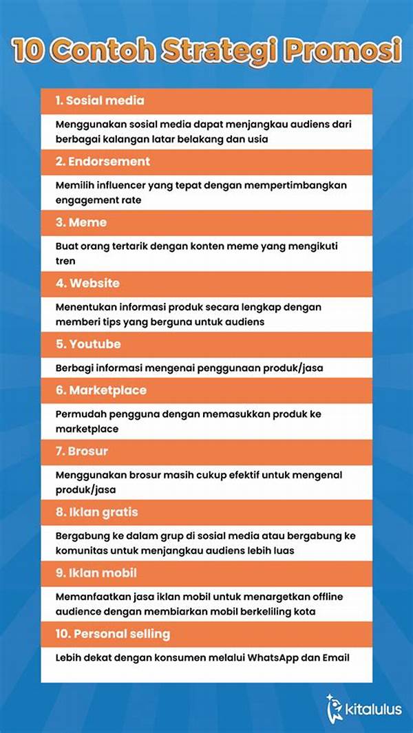 Strategi promosi juga harus mempertimbangkan media promosi yang digunakan. Mulai dari media sosial, blog, hingga media konvensional, semua memerlukan pendekatan yang berbeda. Dengan menyesuaikan format dan gaya penyampaian, efektivitas promosi bisa meningkat. Misalnya, audiens di media sosial mungkin lebih menyukai konten yang humoris dan gaul dibandingkan dengan konten yang terlalu kaku dan formal.