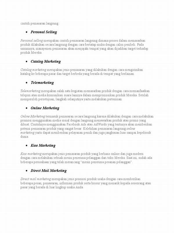 Pemasaran langsung menawarkan banyak manfaat bagi perusahaan yang ingin berinteraksi lebih dekat dengan pelanggan mereka. Memahami dan menerapkan sebutkan 3 contoh pemasaran langsung, seperti email marketing, SMS marketing, dan telemarketing, dapat membantu perusahaan dalam menjangkau audiens yang lebih luas dan lebih efektif. Dengan demikian, menjadi bagian integral dari strategi pemasaran modern yang sukses. Pendekatan langsung ini memungkinkan komunikasi yang lebih personal dan respon yang lebih cepat dari konsumen, membuatnya menjadi alat yang sangat berharga dalam dunia bisnis yang kompetitif saat ini.