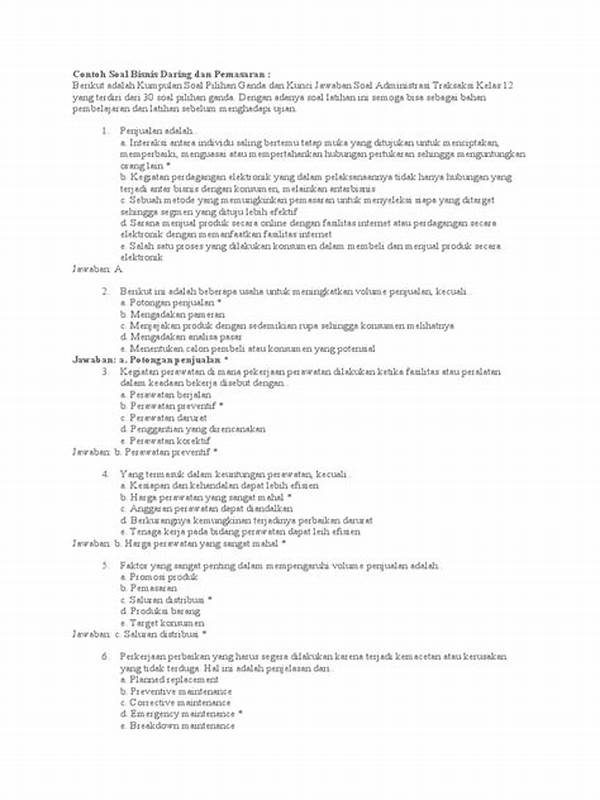 Ada beberapa elemen kunci yang harus ada dalam soal teori kejuruan bisnis daring dan pemasaran: